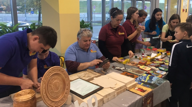 Для школьников были проведены мастер классы по резьбе и росписи по дереву.