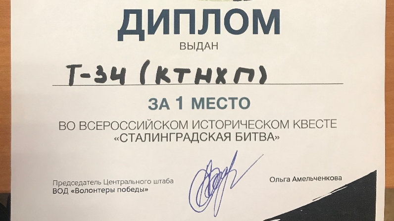 1 место во Всероссийском историческом квесте "Сталинградская битва"