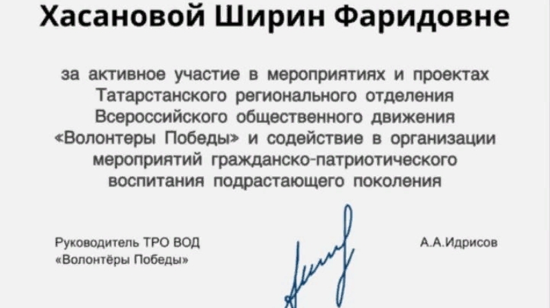 Студентка 2 курса по специальности "ДПИ и народные промыслы" Ширин Хасанова является активным участником Всероссийского общественного движения "Волонтеры Победы" . В мае-июне 2020 года Ширин Хасанова приняла участие в благоустройстве мест захоронения воинов Великой Отечественной войны, за что награждена благодарственным письмом Всероссийского общественного движения "Волонтеры Победы" . От всей души поздравляем!
