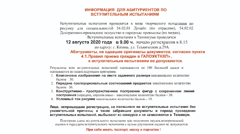 Информация по вступительным испытаниям!