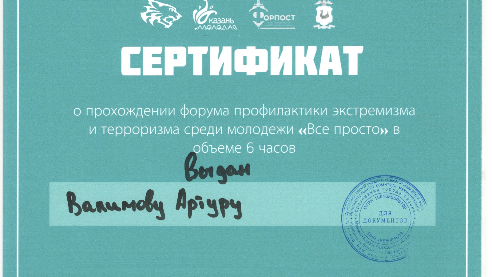 14 декабря 2021 г. на базе Исторического парка «Россия – Моя История» состоялся Форум по профилактике экстремизма и терроризма среди молодежи «Все просто», на котором принял участие студент 2 курса гр. №540Ю/9 Валимов Артур.