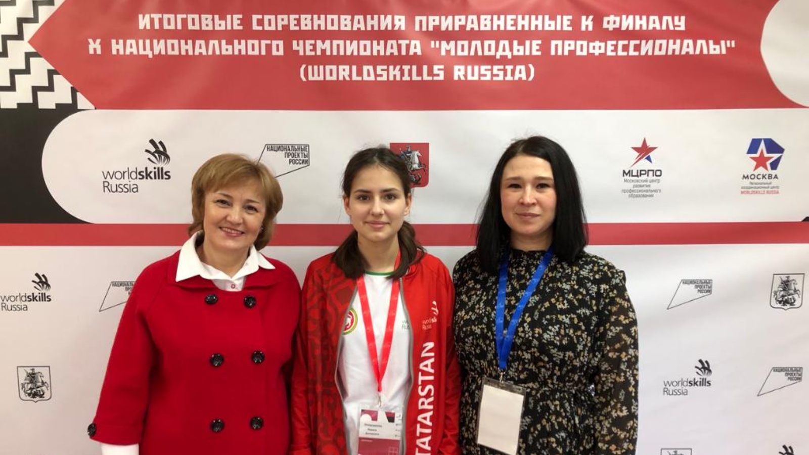 ГАПОУ «Казанский техникум народных художественных промыслов» представляет конкурсант в категории «юниоры» – ученица ГАОУ «Полилингвальный комплекс «Адымнар – путь к знаниям и согласию» г.Казани Низмутдинова Карина Дамировна и эксперт-компатриот Саттарова А.Г.