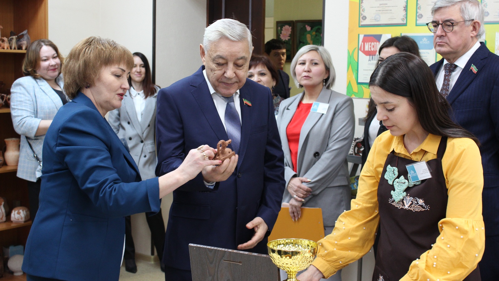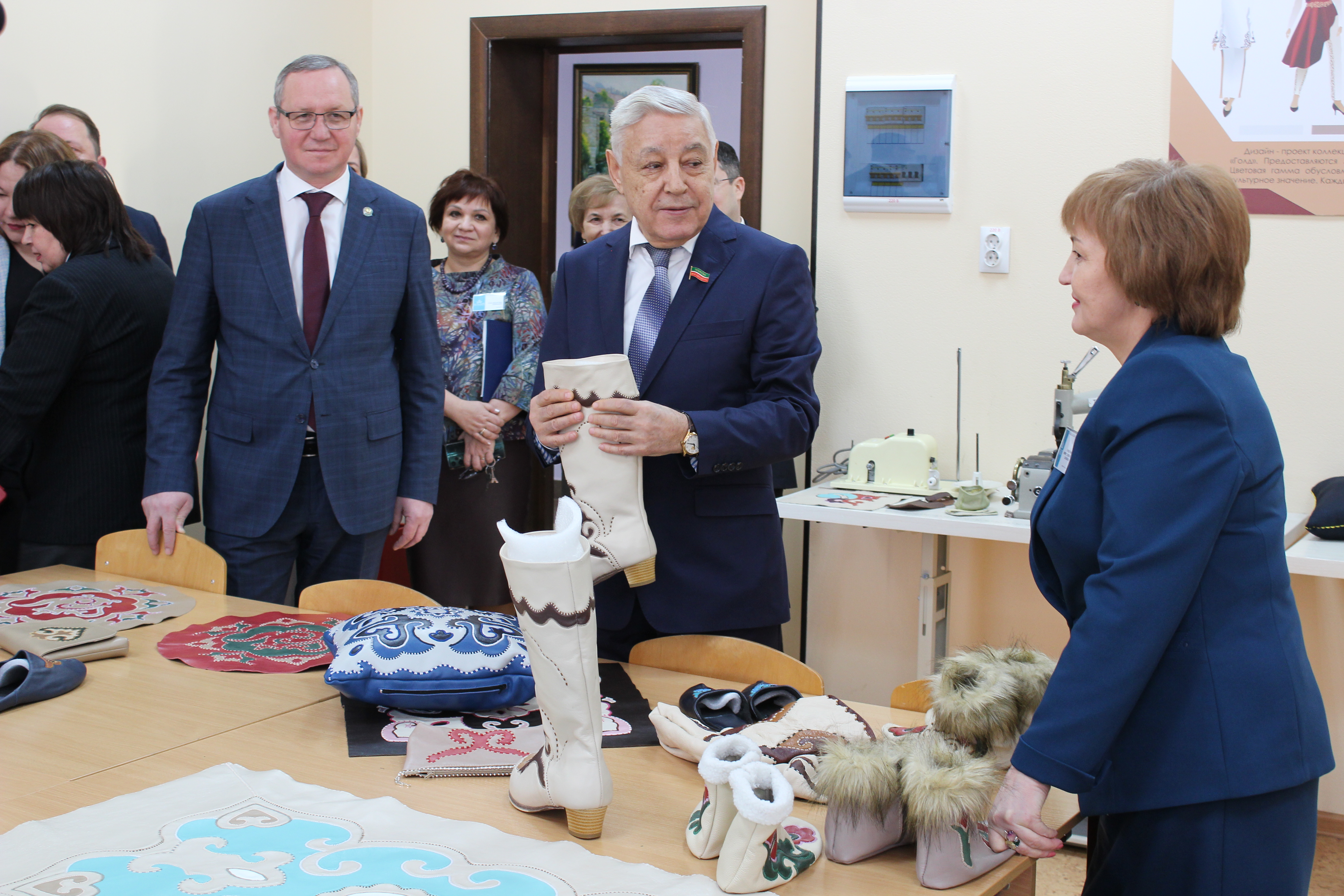 Фарит Хайруллович высоко оценил оснащение мастерских современным оборудованием и отметил высокий вклад сотрудников техникума в сохранении народных традиций и ремесел.