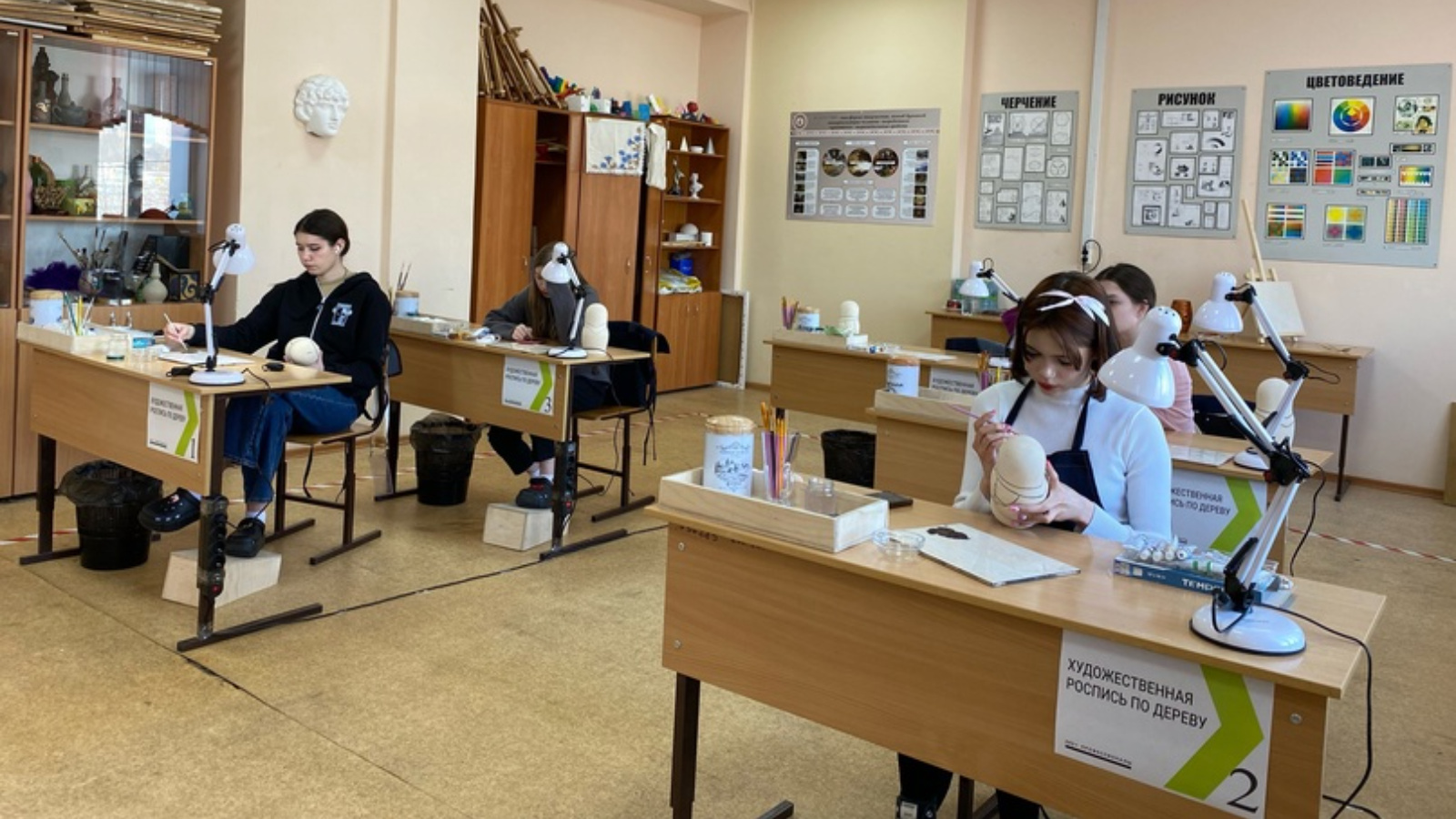 4 марта началась подготовительная работа к началу Регионального этапа чемпионата «Профессионалы» по компетенции «Художественная роспись по дереву». Участвуют студенты 559, 561 и 560 гр. – Мухаметзянова Л., Гулина А., Каримова А., Губадуллина З. И Беспрозванова Н.