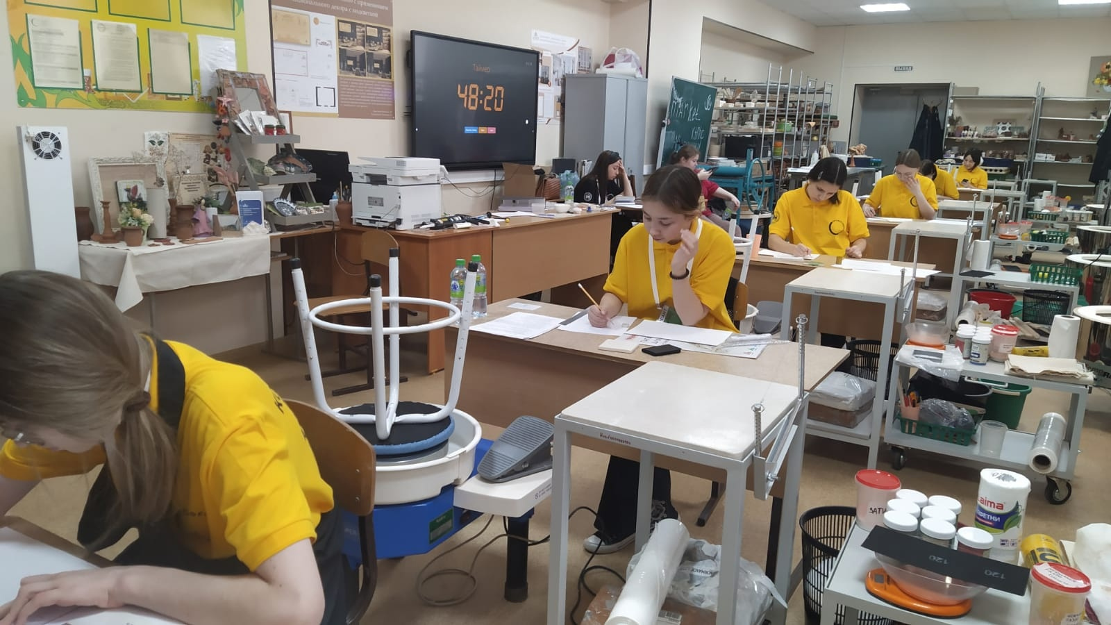 13 марта 2024 года в техникуме успешно завершился второй соревновательный день регионального этапа чемпионата "Профессионалы" в компетенции: "Ремесленная керамика - юниоры". Напомним, что в данной компетенции участвуют учащиеся Школы «Адымнар», Лицея №121 Советского района г.Казани и Лицея «Алгоритм» д.Куюки – Низмутдинова К., Васильева А., Хуснутдинова И., Ширяева К., Оськина Э. и Доронина Я.