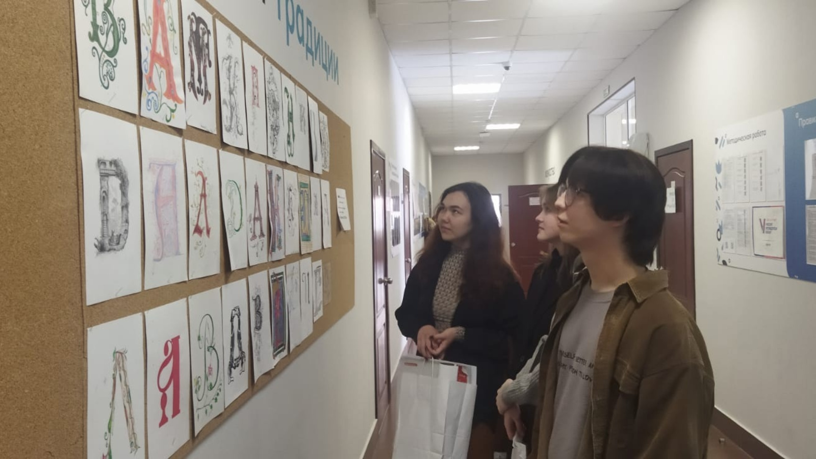 В связи с этим, в техникуме организована выставка композиционного построения заглавных букв в старославянском стиле. Буквы нарисованы в разных техниках и разными материалами. Работа по организации выставки проведена преподавателем, советником директора по воспитанию Э.А.Яруллиной в рамках учебных дисциплин по истории мировой художественной культуры и истории искусств.