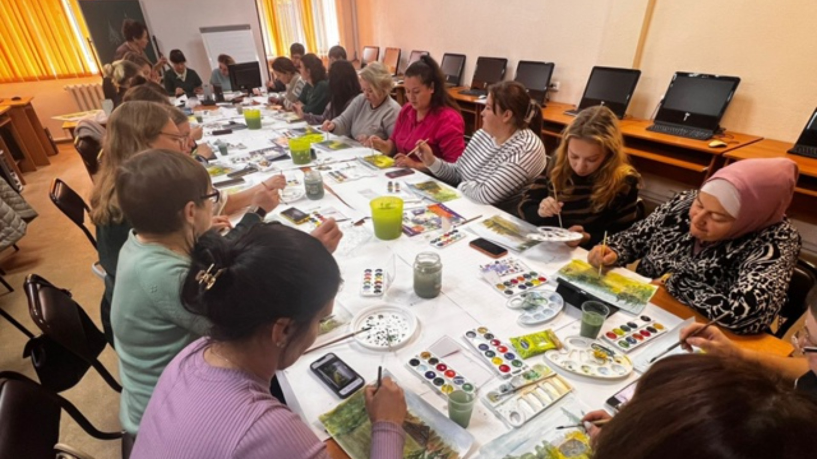 Зульфия Басаровна Тагирова научила тонкостям техники «Живая акварель». Участники создавали прекрасные пейзажи, учась работать с цветом и передавать настроение.
