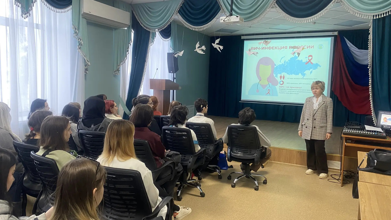 Сегодня, 21 января, в стенах Техникума народных художественных промыслов состоялась важная и полезная лекция для всех студентов. Тема мероприятия была выбрана особенно актуальной в преддверии зимнего сезона простуд и инфекций: профилактика гриппа, ОРВИ и ВИЧ-инфекции.