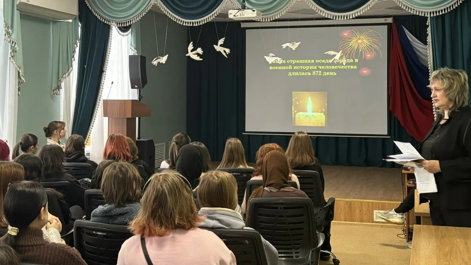 Мероприятие, организованное советником директора по воспитанию Э.А.Яруллиной и преподавателем истории М.П.Игнатовой, погрузило студентов в суровую реальность тех 872 дней.